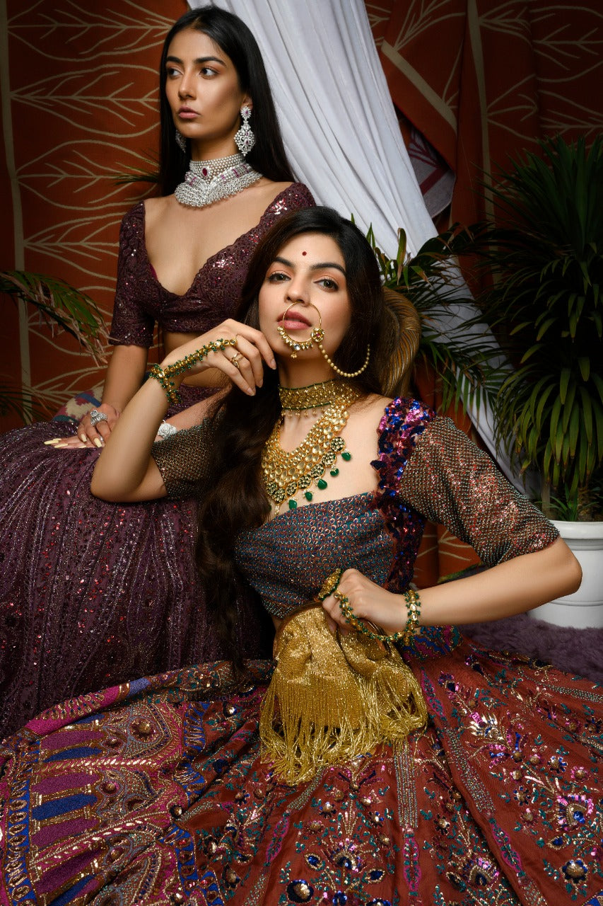 Set of 5 Purple Embellished Potli Bags